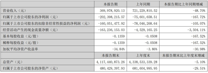 今年上半年,金通灵实现营业收入3.7亿元,同比下滑48.7%;归母净利润-2.02亿元,亏损幅度同比扩大。