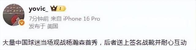 赛前的训练结束后,根据现场记者“yovic”的报道,大量中国球迷当场观战杨瀚森首秀,后者送上签名战靴并耐心互动。