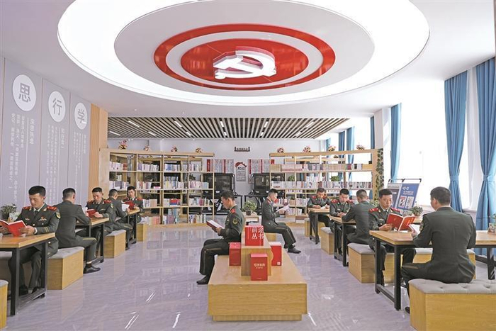 为丰富官兵周末生活,培养官兵爱读书、读好书的兴趣爱好,机动某支队持续开展书香军营活动。图为官兵正在读书学习。马家起 摄