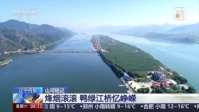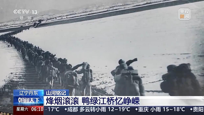 总台记者 闫崎峰:我现在是在中朝友谊桥上,也就是经常说的鸭绿江上桥。在旁边就是鸭绿江断桥,它也通常被称为鸭绿江的下桥。在1950年11月8日到14日,美军出动了100多架战斗机,对这座桥进行了轰炸。在此期间,这座桥被炸断。