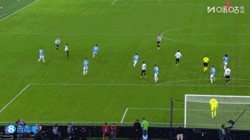 第21分钟,小孔塞桑右侧传中,坎比亚索禁区内抢点打偏↓