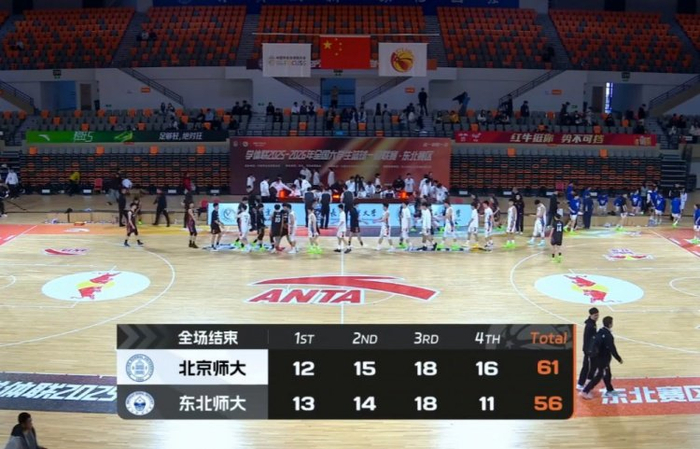末节开局邢司旭外线再度命中三分,北京师大以一波6-0的攻势率先发难,不过东北师大及时找到感觉由王玖豪和范智博进球做出回应。双方防守压迫高整体命中率都不高,不过最后时刻北京师大连续制造犯规罚球领先,吴士广最后虽然两罚一中,但拼下进攻篮板后的补篮帮助球队在读秒阶段取得4分领先奠定胜局。最终,北京师范大学61-56险胜东北师范大学拿下比赛。